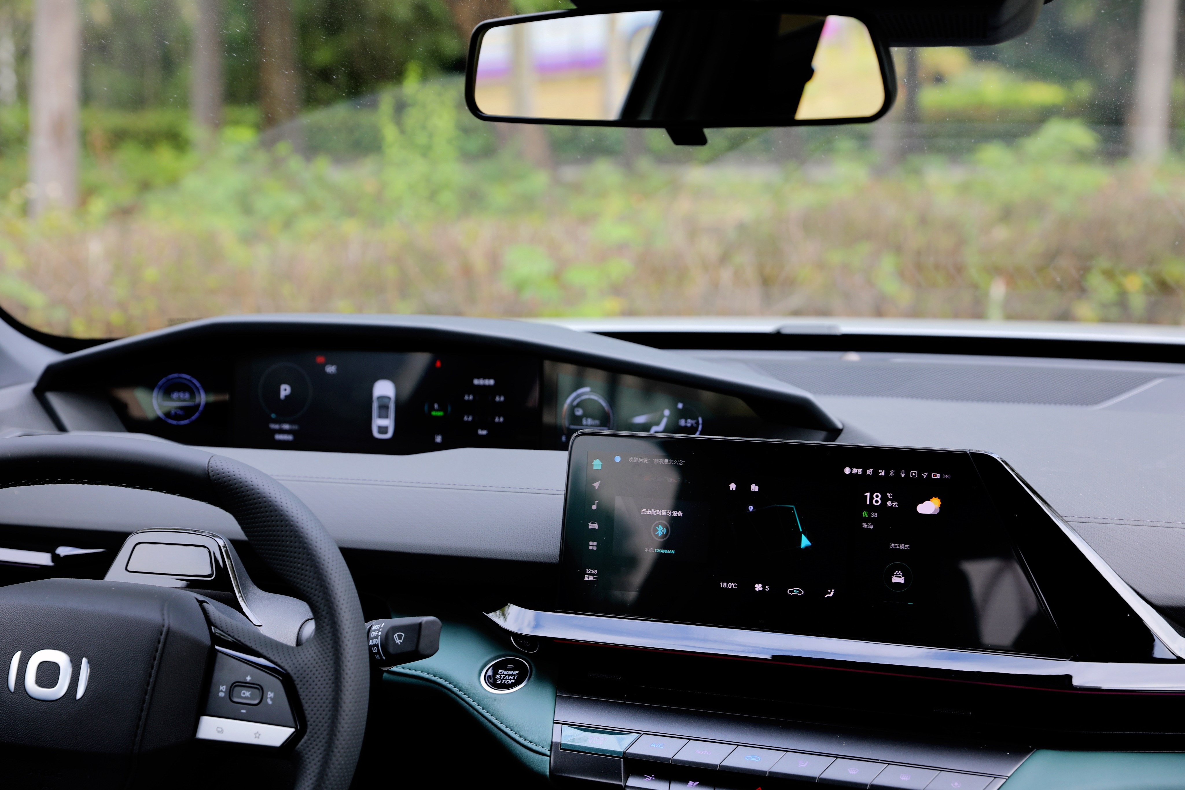 進入車內(nèi),長安啟源A06座艙風(fēng)格很獨特,富有層次感的造型讓你第一眼會感覺很復(fù)雜,但是仔細品味一番后,它特殊的風(fēng)格可以說是別有一番風(fēng)味。啟源A06提供流沙白和林蹤綠兩種面料配色,個人更喜歡林蹤綠的配色方案,更能體現(xiàn)出動感、時尚的一面。