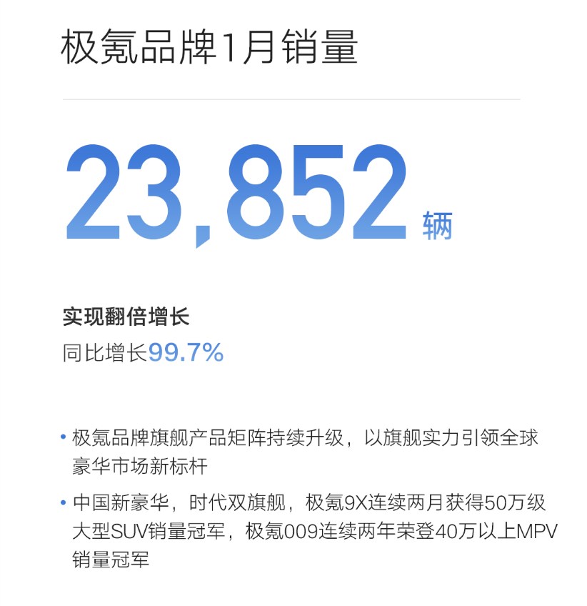 2025年,領(lǐng)克與極氪銷量增幅分別為22.8%和0.9%,極氪也成為吉利汽車旗下中唯一沒有完成銷量目標(biāo)的品牌。這一情況在2026年有望好轉(zhuǎn),1月,極氪品牌2.4萬輛,伴隨9X熱銷,林杰正在帶領(lǐng)團(tuán)隊完成“極氪向上”的使命。